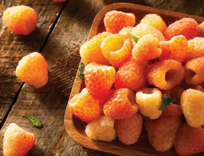 Fall Gold Yellow Raspberry: (Everbearing) A pick and eat berry. Very sweet, soft fruit with excellent flavor. Ripens similar to the Heritage variety in late June and again in September. Zone 4-8